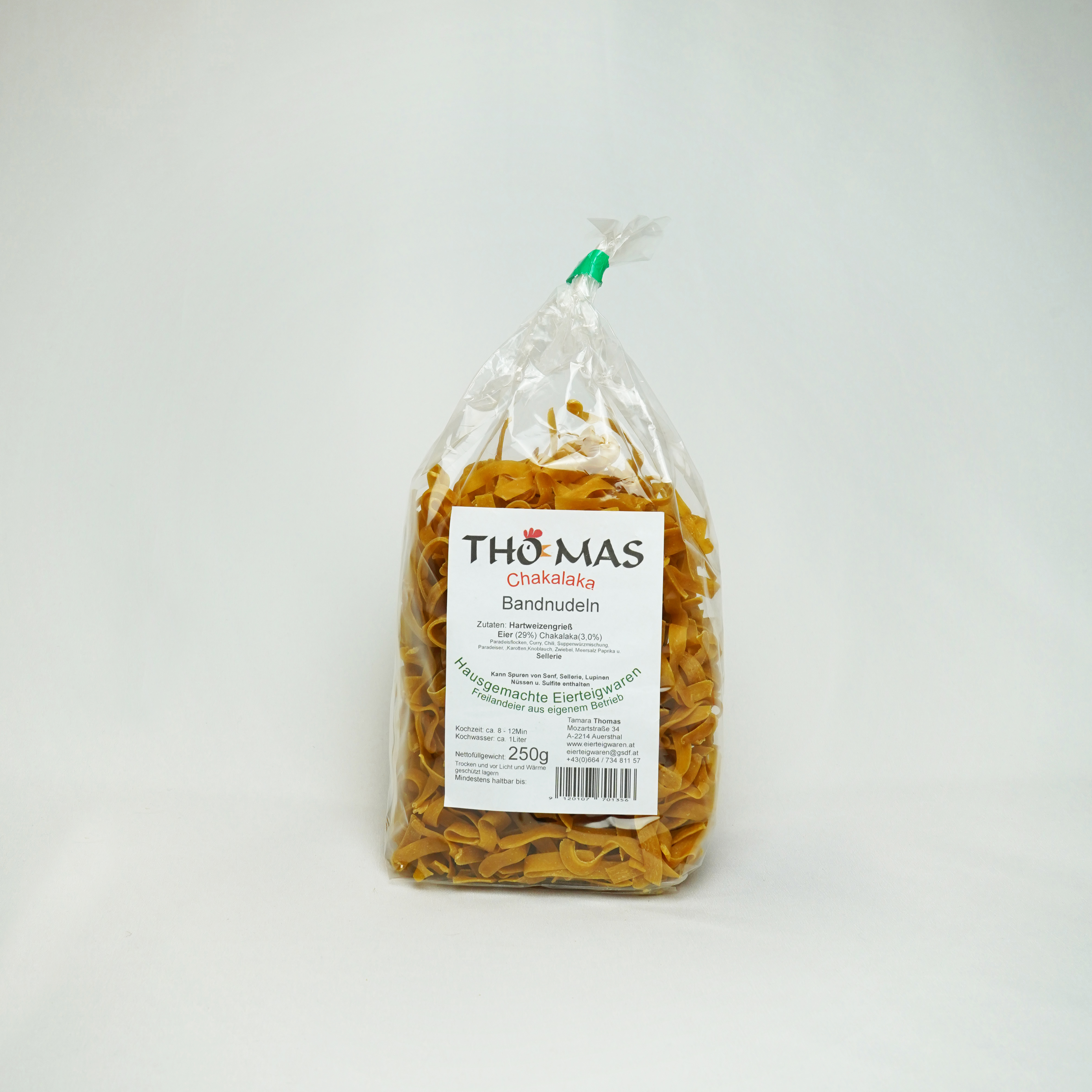 Zutaten: Hartweizengrieß, Eiern von Freilandhuhnern, Paradeisflocken, Curry, Chili, Karotten, Knoblauch, Zwiebel, Paprika, Sellerie und Meersalz