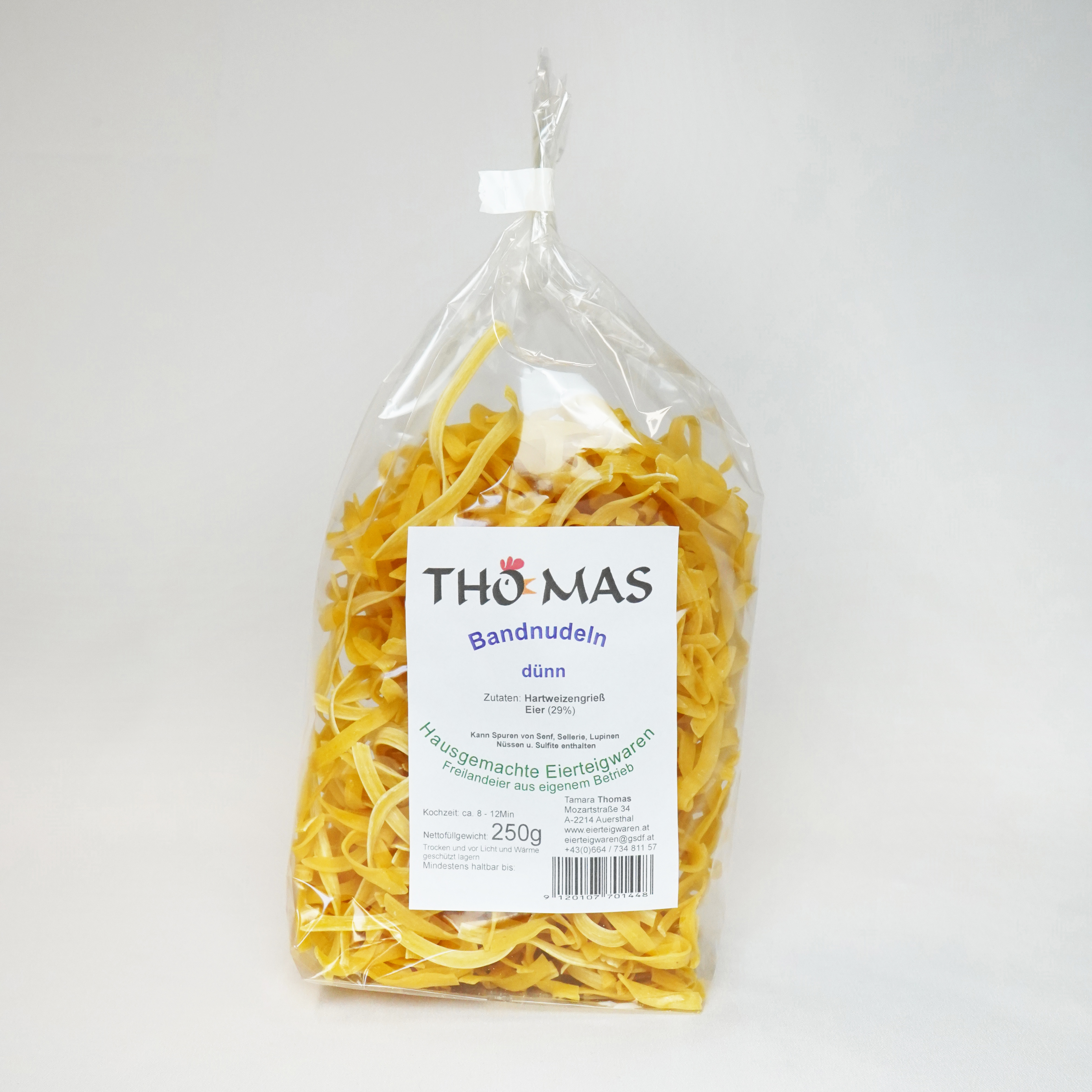 Tauchen Sie ein in die Welt des authentischen italienischen Geschmacks mit unseren delikaten dünnen Bandnudeln. Hergestellt aus hochwertigem Hartweizengrieß mit Eiern aus eigener Freilandhaltung, bieten sie eine perfekte Textur und einen unverwechselbaren Geschmack.