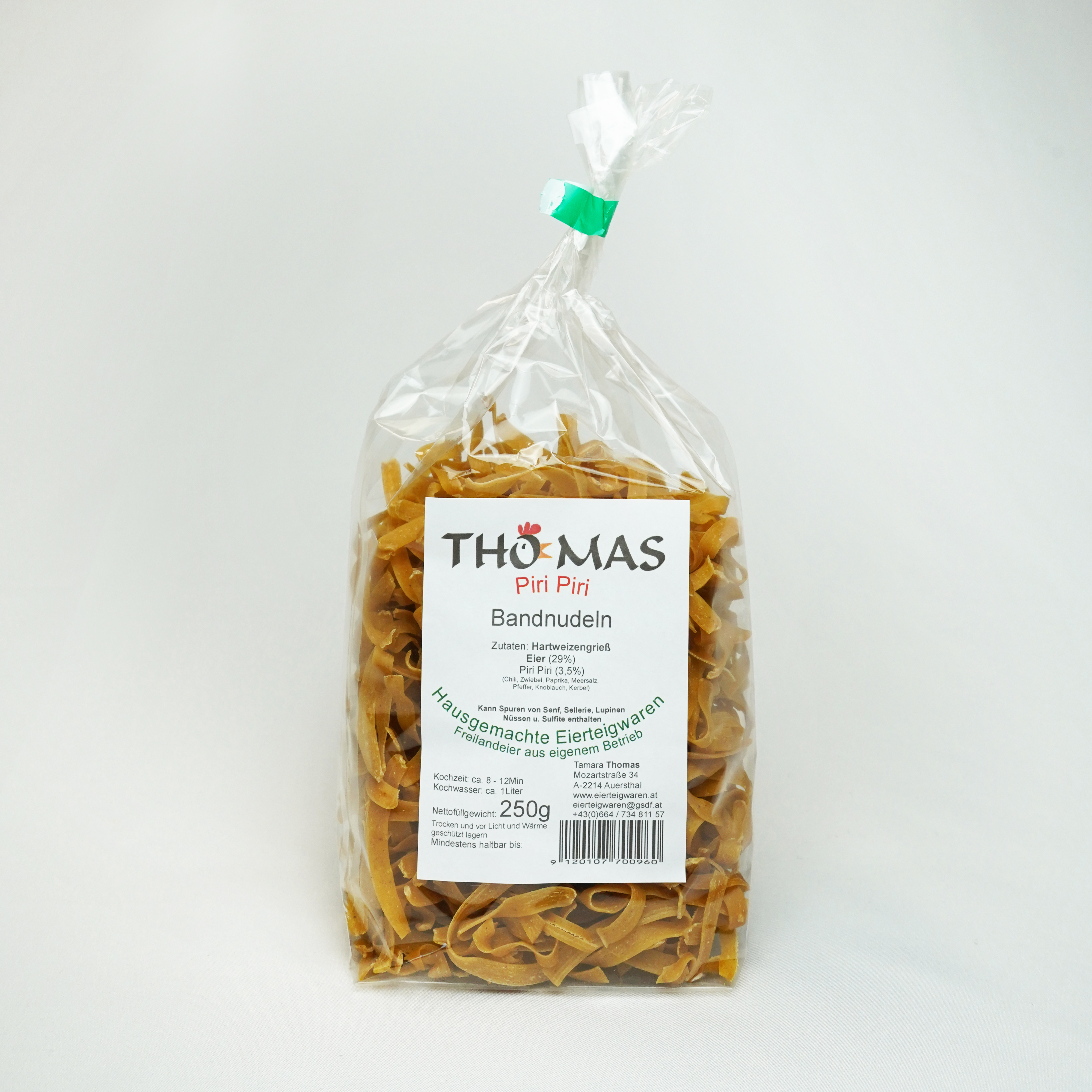 Zutaten: Hartweizengrieß, Eiern von Freilandhuhnern, Piri Piri (Chili, Zwiebel, Paprika, Pfeffer, Knoblauch, Kerbelblätter, Meersalz